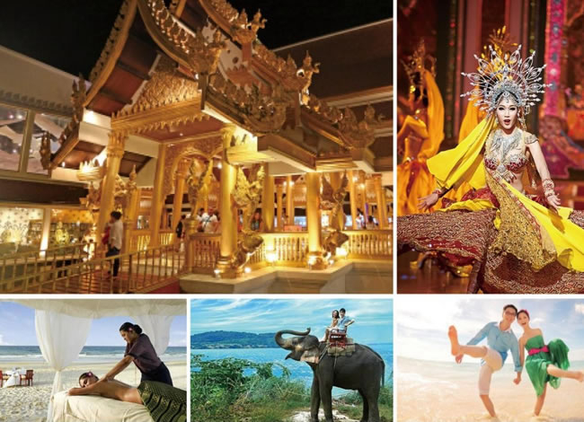 三大游船:快艇出海;暹羅/東方公主號、長尾船游湄南河;精華行程:暢游金沙島+珊瑚島、騎大象、神殿寺、國粹人妖秀、泰式古方按摩;風情之旅:觀賞新加坡國標-獅身魚尾像;游覽最為迷人的世外桃源度假小島-圣淘沙;