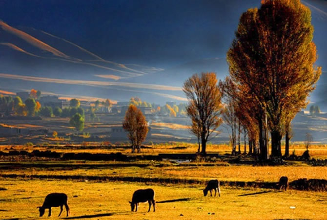 早餐后賞萬畝【青楊林】,數(shù)以萬計的青楊林像衛(wèi)兵守護(hù)著清清傍河,守望著天堂里的香格里拉,春天,一片碧波蕩漾,春意盎然,秋天則燦若云霞,金黃灑滿大地,無需裝飾就是一幅完美的自然畫卷。然后觀【色拉草原風(fēng)光】,翻越【波瓦山】,欣賞迷人的【赤土】河谷、前往令人神往的【亞丁景區(qū)】。我們將轉(zhuǎn)乘景區(qū)的觀光車,(觀光車費用:120元/人費用自理)翻越【牛郎神山】(海拔4760米),抵達(dá)目的地亞丁景區(qū)【扎灌崩】,步行十分鐘左右,到【沖古寺】,(藏語意為填湖造寺,海拔3900米)欣賞由草地、森林、小溪和嘛呢堆組成的天然沖古草坪,朝觀神山【仙乃日】(意為觀世音菩薩,海拔6032米)。然后乘坐電瓶車(約6.5公里,往返80元,單程50元,費用自理)或者步行(步行3個小時),到達(dá)【洛絨牛場】,遠(yuǎn)觀【夏諾多吉】(意為金剛手菩薩,海拔5958米),【央邁勇】(意為文殊菩薩,海拔5958米),站在央邁勇神峰下,轉(zhuǎn)身向后瞧去,由群山環(huán)繞著的寬闊峽谷間,森林、草地、溪流和睦地各守一方,這氣勢莽莽的自然景觀,讓人流連忘返。然后可步行或者騎馬(約3小時,騎馬往返費用自理)到達(dá)【牛奶?!俊R蚺D毯:臀迳:0胃?,客人務(wù)必根據(jù)自身實際情況選擇自費騎馬前往游覽. (牛奶海在央邁勇的山坳里,呈扇貝形,中間是碧藍(lán)的雪水,四周雪山環(huán)繞,湖水清瑩碧藍(lán)以其玲瓏秀雅水色翠藍(lán)而著名)。繼續(xù)向前便到達(dá)美麗的【五色海】又名登崇措(五色海由于光的折射下,產(chǎn)生五種不同顏色而得名:其真名為“單增措”,它位于仙乃日與央邁勇之間,海拔4600米,湖面呈圓形。面積0.7公頃,冰谷下伸至湖畔,雪山倒影湖面,呈現(xiàn)奇幻的色彩,是藏區(qū)著名的圣湖)。上山時可觀賞野生動物、高山花蕊、雪山森林、冰川、湖泊、河流,體驗人與自然和諧相處的天然妙趣,讓神山圣水與心共鳴,盡情沉醉在夢幻之地。下午6點返回景區(qū)門口。宿香格里拉鎮(zhèn)。