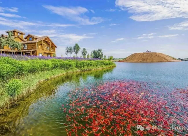 中餐后前往【金沙島旅游區(qū)】(游覽時間約1小時)這里有沙漠、藍(lán)天、碧水等;靜謐的湖面、風(fēng)情的木質(zhì)別墅組成了的美麗畫卷,這里是花的海洋,歡樂的世界。