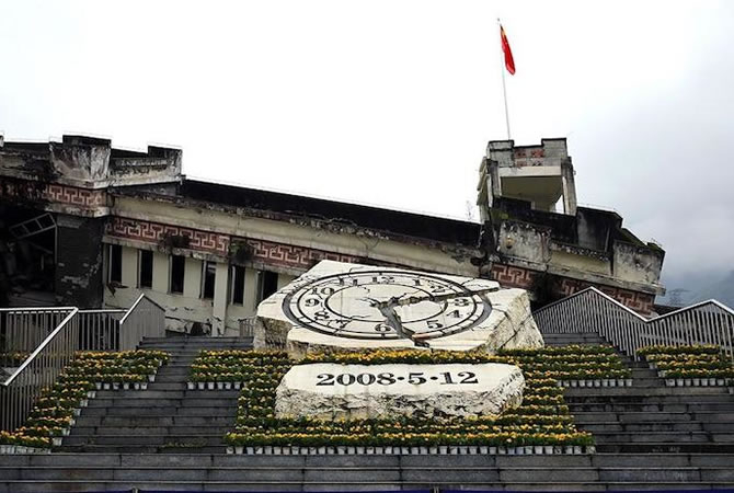 參觀拍照后前往漢旺地震遺址,在汶川地震中,綿竹遭受了巨大災(zāi)難,尤其是漢旺地區(qū)的沿山地區(qū)和山區(qū),房屋幾乎全部坍塌,基本完好的房屋僅占8%左右。地處漢旺的東方汽輪機廠損失慘重。后將其改建成遺址紀念區(qū),可看到綿竹漢旺鎮(zhèn)、沿山鄉(xiāng)村旅游地震遺址帶,世界最大板房臨時安置區(qū),在漢旺地震遺址區(qū)的“512紀念鐘”前見證歷史。